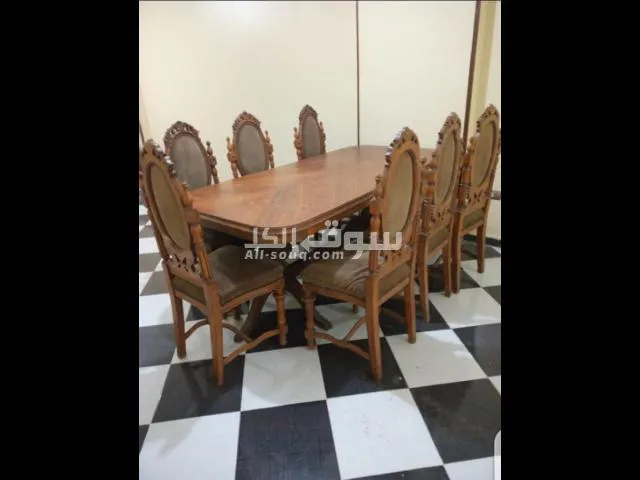سفرة 8 كراسي وطرابيزة محتاجة تنجيد وشد للكراسي
