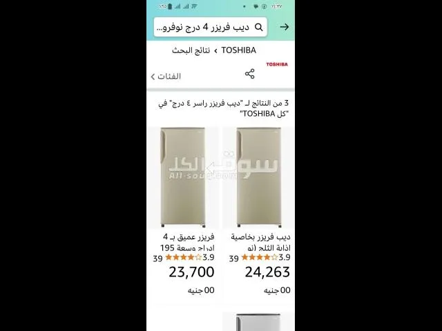 ديب فريزر توشيبا أربعة درج ورف نوفروست بحالةالمصنع كالجديد استعمال خفيف مازال فى الضمان