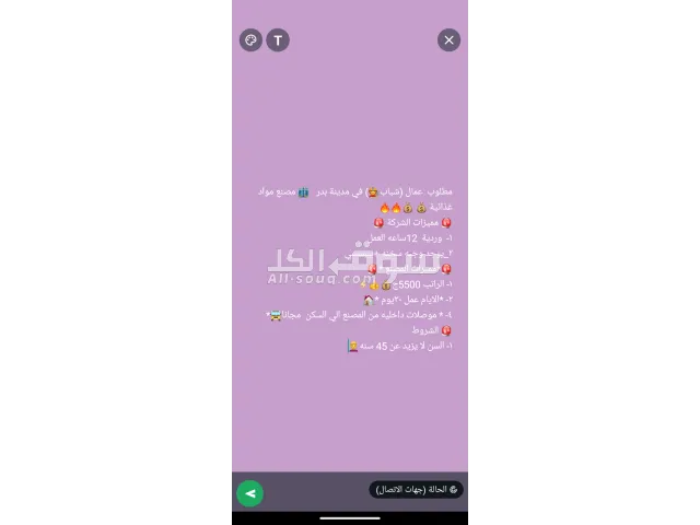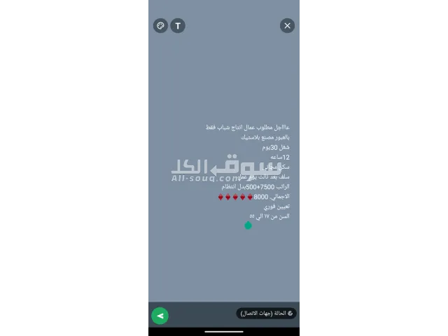 تعلن شركتنا عن حاجتها لعمال انتاج