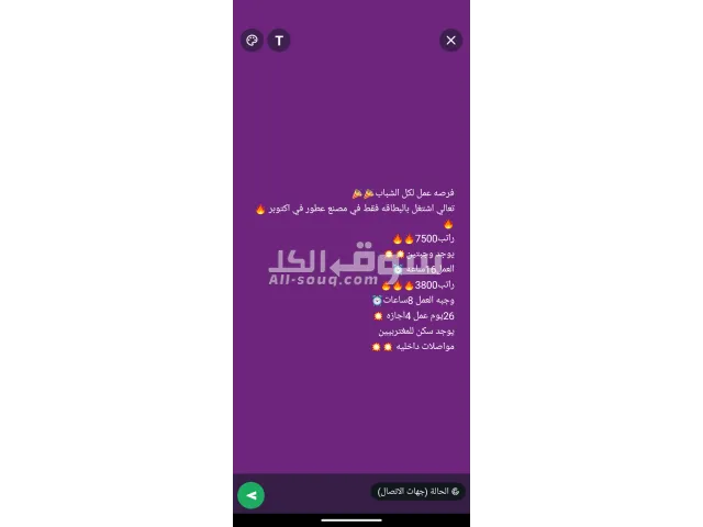 كما تعلن شركتنا عن توافر فرصه عمل