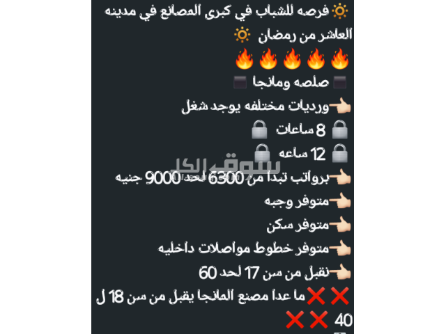 ❌❌ما عدا مصنع المانجا يقبل من سن 18 ل 40 ❌❌