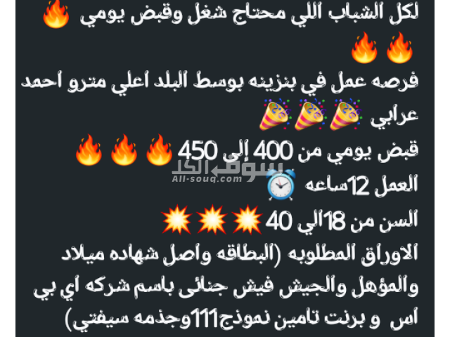 لكل الشباب اللي محتاج شغل وقبض يومي 🔥🔥🔥