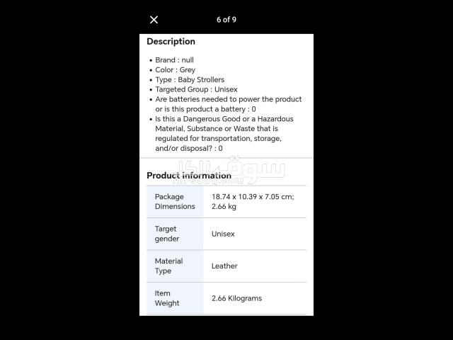 هي سياره لنقل الاطفال بها فرامل اماميه وخلفيه وبها حزام امان للطفل ولها مظله ولا غطاء للشتاء ولها مخزن سفلي لوضع الاشياء الطفل ولها باب لمنع سقوط الطفل من على العربه ولها شبكه في المظله لرؤيه الطفل اثناء نومه بدون ازعاجه من الضوء