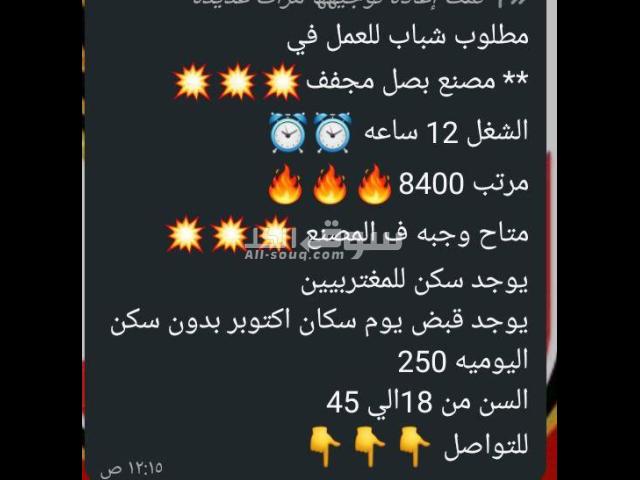 🆕مطلوب عمال تعبئه وتغليف لمصنع صلصه في العاشر من رمضان 🍅🍅