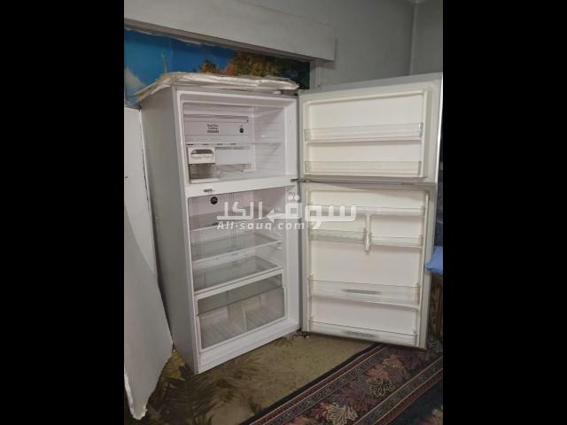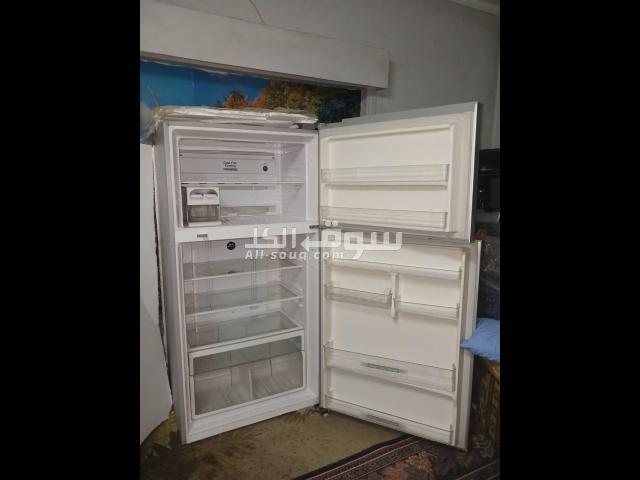 حالة ممتازة: الثلاجة مستعملة بعناية فائقة ونظيفة جداً من الداخل والخارج كما يظهر في الصور.