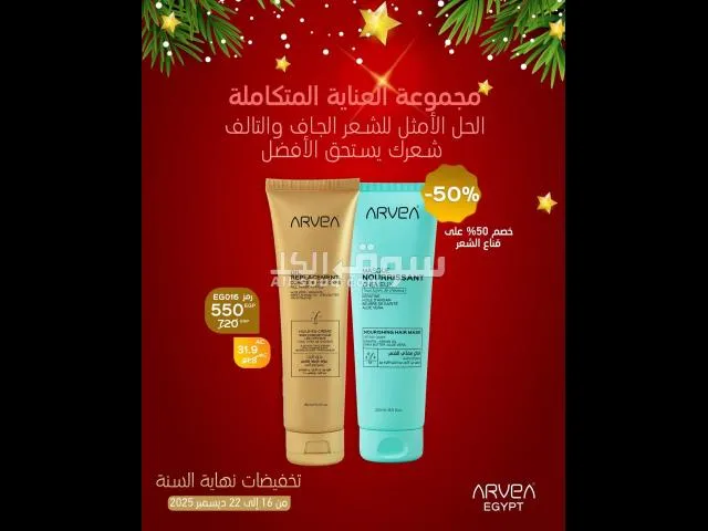 مجموعة أرفيا للعناية بالشعر بتركيبة طبيعية بالألوفيرا والزبدة الملكية، تمنح ترطيب ونعومة ولمعان