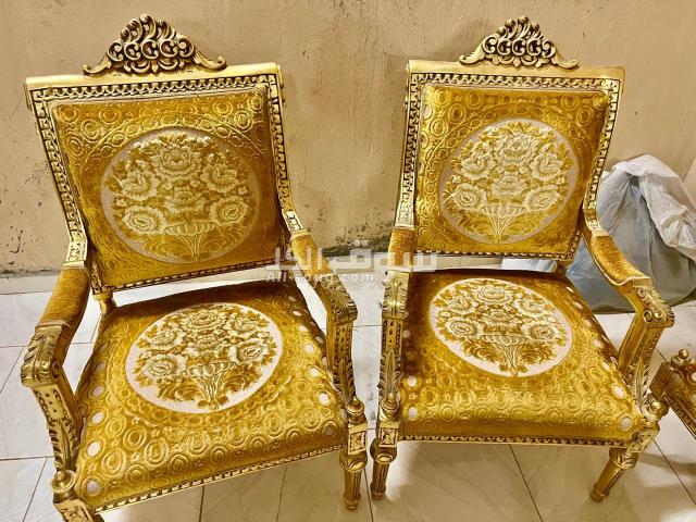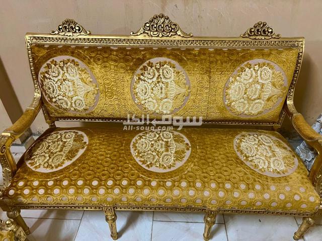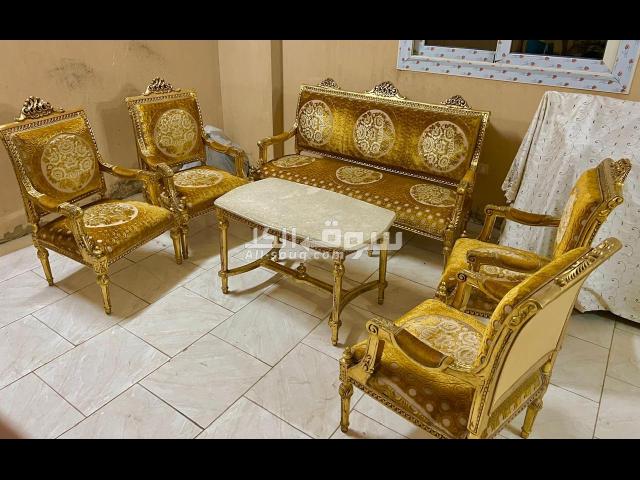 صالون مدهب طراز قديم بحالة جيدة جدا عبارة عن كنبة و٤ كراسي وترابيزة