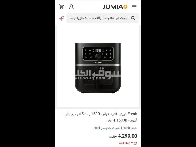 - > إير فراير فريش 5 لتر ديجيتال 1500 واط موديل FAF-D1500B ضمان سنة, تواصل مع المعلن