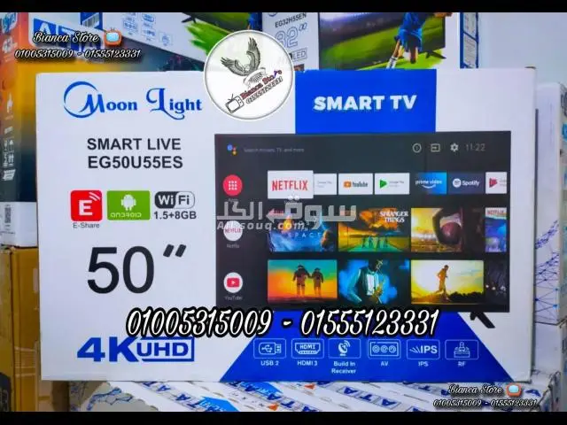 - > شاشة تلفزيون 50 بوصة سمارت أندرويد UHD 4K رسيفر داخلي IPS موديل Moon Light EG50U559S, تواصل مع المعلن
